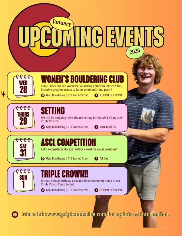 Grip Bouldering is excited to host two ASCL (American Scholastic Climbing League) competitions this season, welcoming student climbers from K–12 schools across Colorado’s Western Slope. These events are a chance for youth climbers to challenge themselves, represent their schools, and connect with peers in a fun, supportive environment
